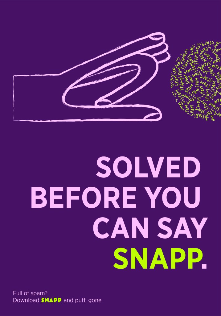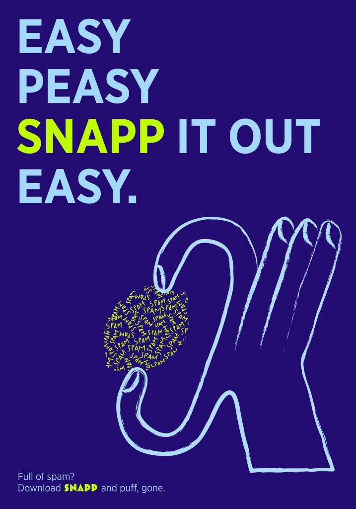 Appmelder has one goal: fighting against SPAM in any shape, suing each spam attempt reported by the users. Appmelder had a very cool mission but a super boring identity. So what if Appmelder gets Snappmelder? The rebranding process started with a workshop with the client to dig into their identity and ended with a re-naming and a complete new brand. Snapp wants to be a very confident buddy for people who are sick of spam, giving them the power to get rid of unwanted advertising. How? With a simple snap. The storytelling is based on the gestures of hands, very tangible, relatable, expressive and replicable elements. The strategy combines analogical and digital channels to raise awareness and invite to the app download.